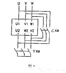 三相異步電動機(jī)的控制由定子電流的相序決定,從載流相到電流滯后相。如果你想改變控制,你只需要改變?nèi)嗬@組中的電流相序。當(dāng)使用Y連接時,三相繞組的電流相序設(shè)置為u、V和w,電源電壓相序為Uuv、Uvw、Uwu,如圖2所示。無論何種連接方式,只要三相電網(wǎng)電壓的相序保持不變,三相繞組的實際相序仍然是u、v和w,因此控制是相同的。因此,當(dāng)Y-△ 啟動時,其轉(zhuǎn)向不變。